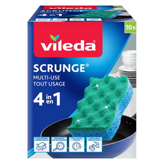 Vileda Scrunge Multi-Use Non-Scratch Scrub Sponge (Pack of 10) | Rinses Clean, Stays Fresh | Durable & Long-Lasting | Dishwasher Safe