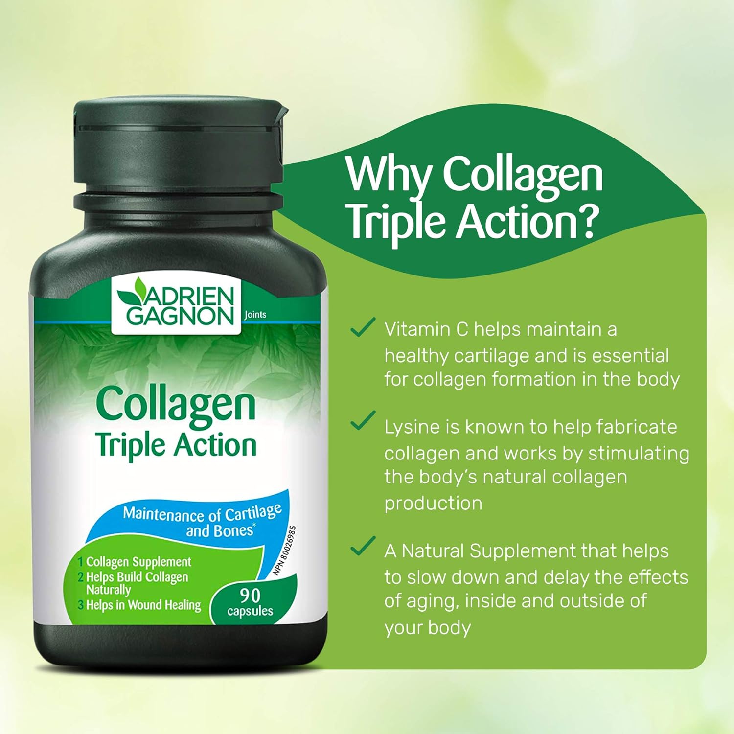 Adrien Gagnon - Collagen With Lysine & Vitamin C, Triple Action, 90 Capsules