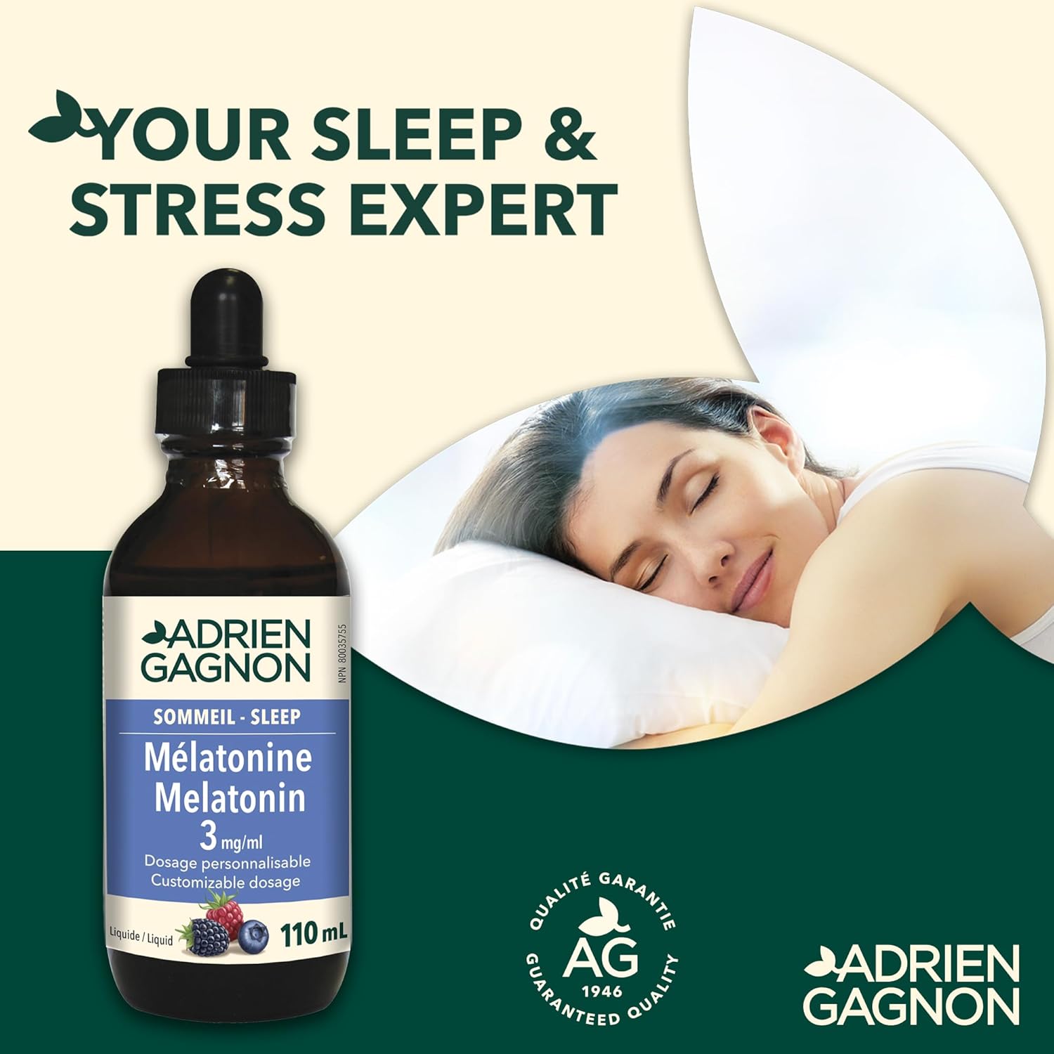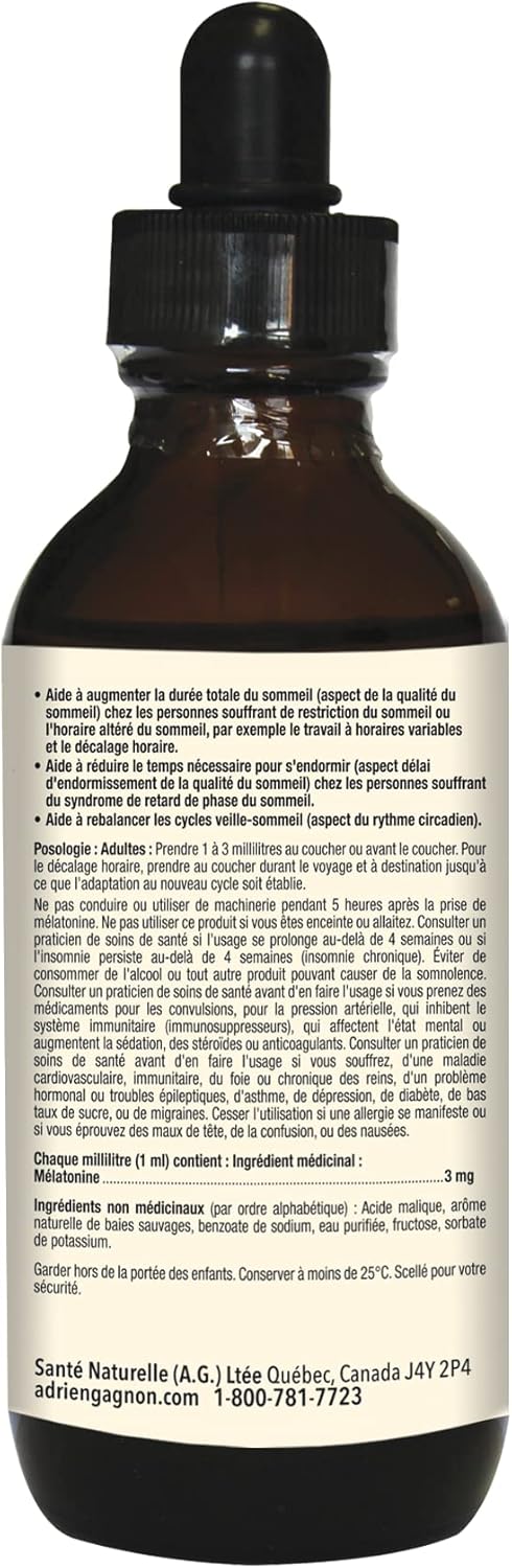 Adrien Gagnon - Liquid Melatonin 3 mg, for Faster and Softer Sleep, Wildberry Flavour, 110 ml