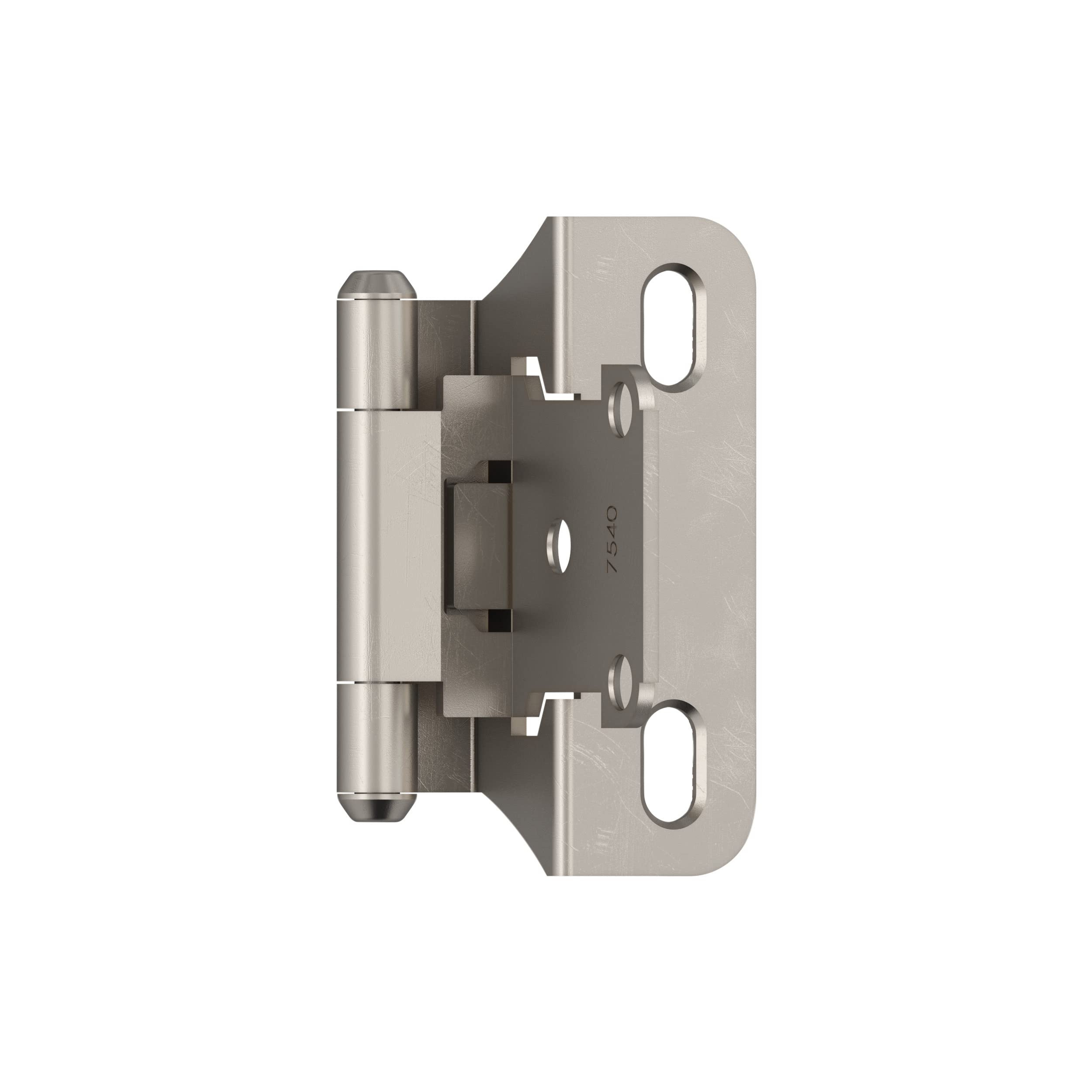 Amerock Cabinet Hinge 1/4 inch (6 mm) Overlay Satin Nickel 2 Pack Self-Closing Partial Wrap Cabinet Door Hinge