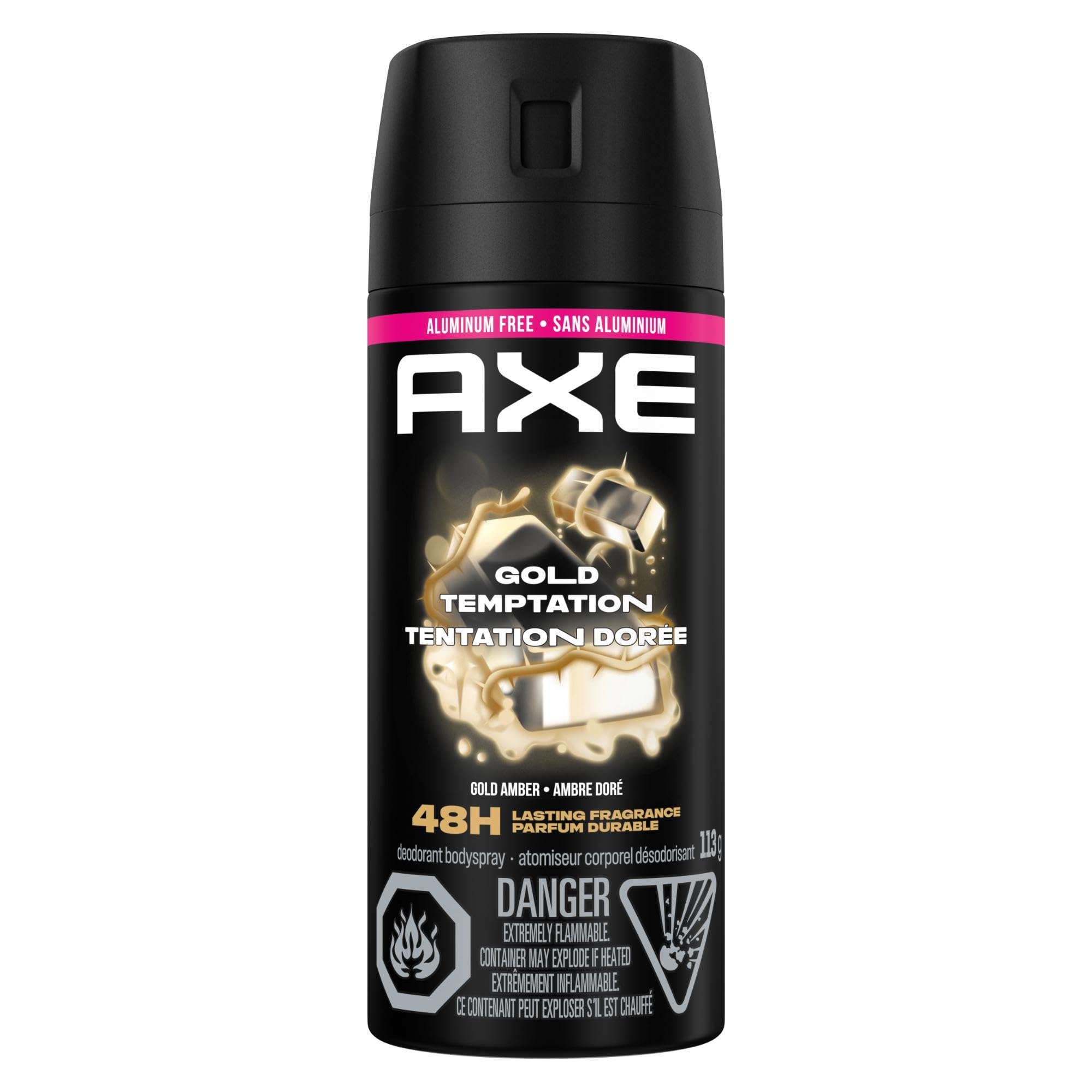 AXE Gold Temptation Deodorant Body Spray for long-lasting odour protection, Gold Amber, Aluminum-free Deodorant, 113g