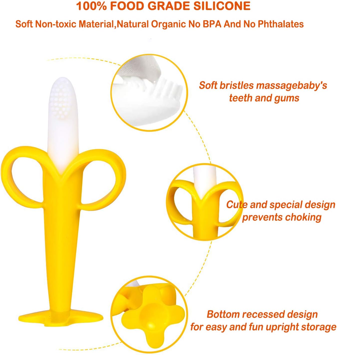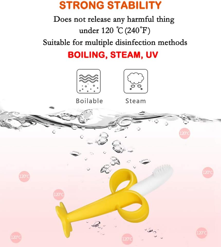 Banana Baby Toothbrush, Self-Soothing Pain Relief Soft Baby Teething Toys, Training Kids Toothbrush for Babies, Toddlers,Infants, Boy and Girl, Natural Organic BPA Free, Banana Teether(Yellow)