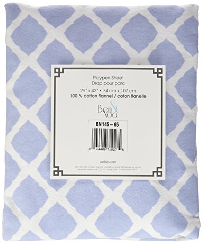 Ben & Noa Pack N Play Playard Sheet, Soft 100% breathable cotton flannel, Made in Canada, Blue Lattice