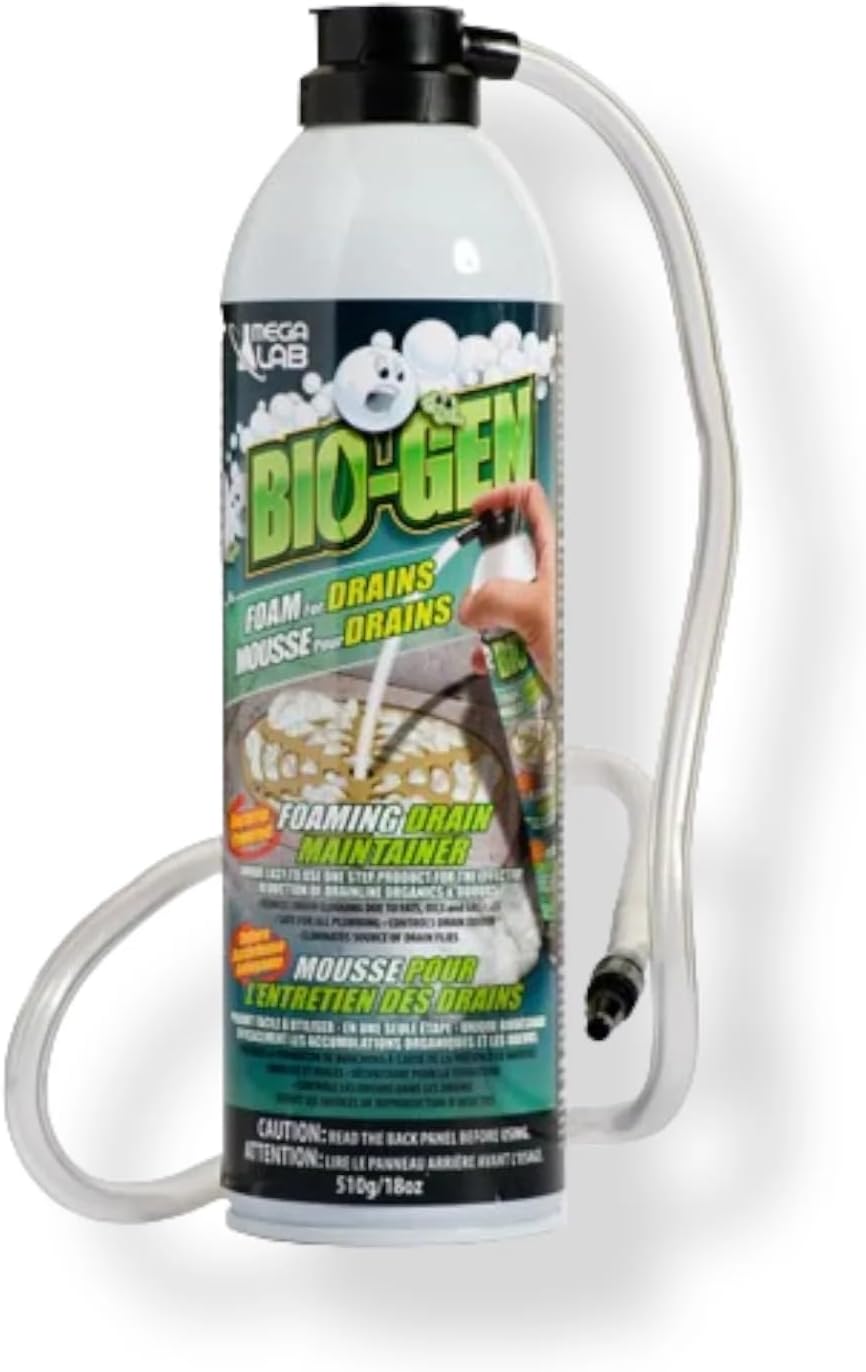 BIO-GEN Foam for Drains - Totally new and unique concept in drain maintenance. Bio-energized foaming drain cleaner combining the power of concentrated natural bacteria in formula with citrus grease cutters and odour counteracting “boosters”. Provides positive control of odour and the elimination of drain fly and insect sources. Maintains drains and lines in a clean and free flowing condition without the use of harsh chemicals or hazardous solvents. Does not harm plumbing fixtures, drains, traps, sewers or septic systems. Deodorizes and digests grease and waste naturally. And so easy to use.