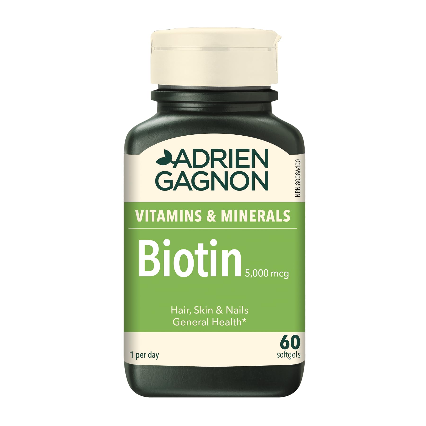 Adrien Gagnon - Biotin Extra-Strength 5000 mcg, for Thicker Hair, Healthier Skin, and Stronger Nails, 60 softgels (Gift Wrap Available)