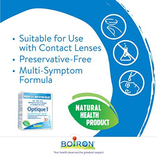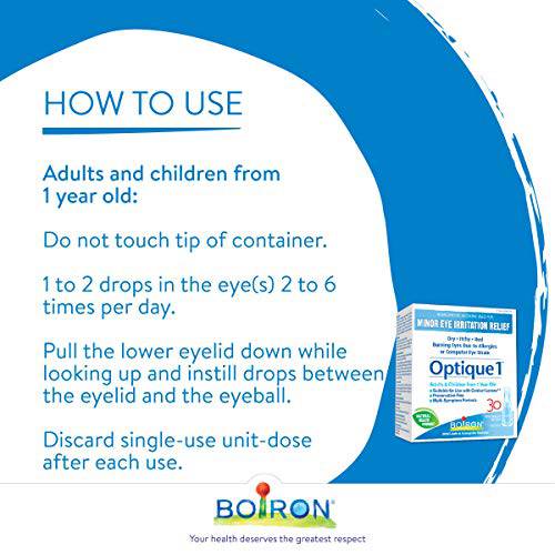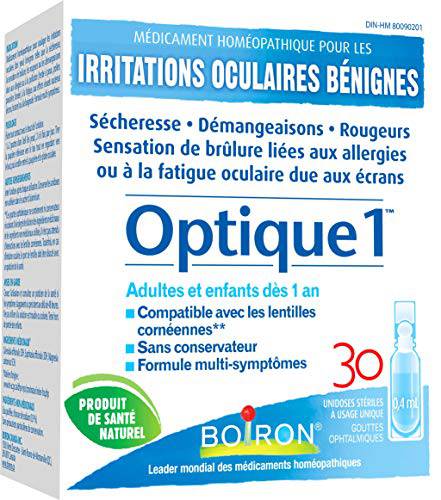 Boiron Optique 1, Eye drops used to relieve minor eye irritations such as dry, itchy or red burning eyes due to allergies or computer eye strain. 30 unit-doses