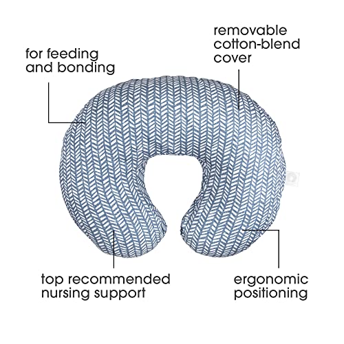 Boppy Nursing Pillow Original Support, Blue Herringbone, Ergonomic Nursing Essentials for Bottle and Breastfeeding, Firm Hypoallergenic Fiber Fill with Removable Nursing Pillow Cover, Machine Washable