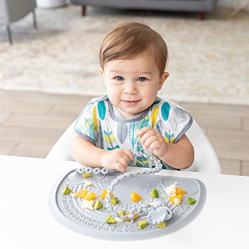 Bumkins Baby Silicone Sensory Placemat, Toddler Placemat, Suction Placemat for Restaurants, Feeding for High Chairs and Tables, Baby Led Weaning, Ages 6 Months Up Gray-pmi
