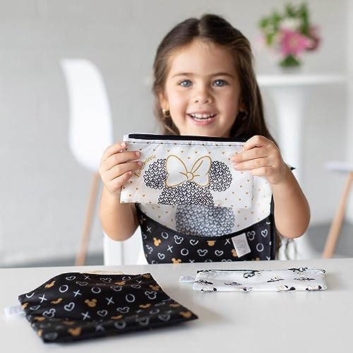 Bumkins Disney Reusable Sandwich and Snack Bags, for Kids School Lunch and for Adults Portion, Washable Fabric, Waterproof Cloth Zip Bag, Travel Pouch, Food-Safe, 3-pk Love, Minnie