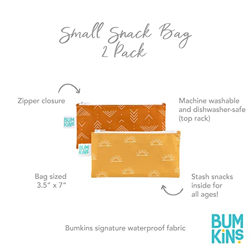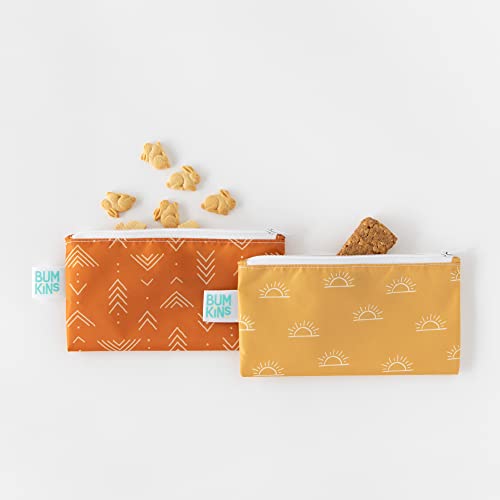 Bumkins Reusable Snack Bags, for Kids School Lunch and for Adults Portion, Washable Fabric, Waterproof Cloth Zip Bag, Supplies Travel Pouch, Food-Safe, 2-pk Desert Boho