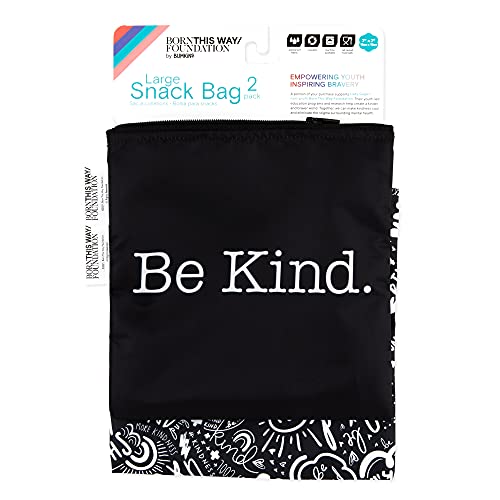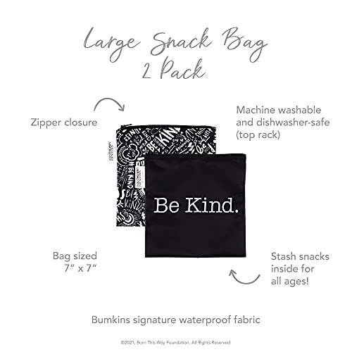 Bumkins Sandwich Bag/Snack Bag, Reusable Fabric, Washable, Food Safe, BPA Free, 7x7 – Be Kind (2-Pack)
