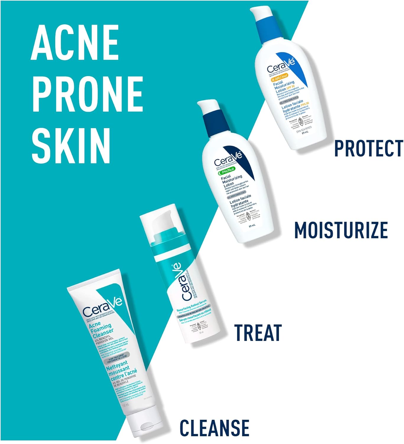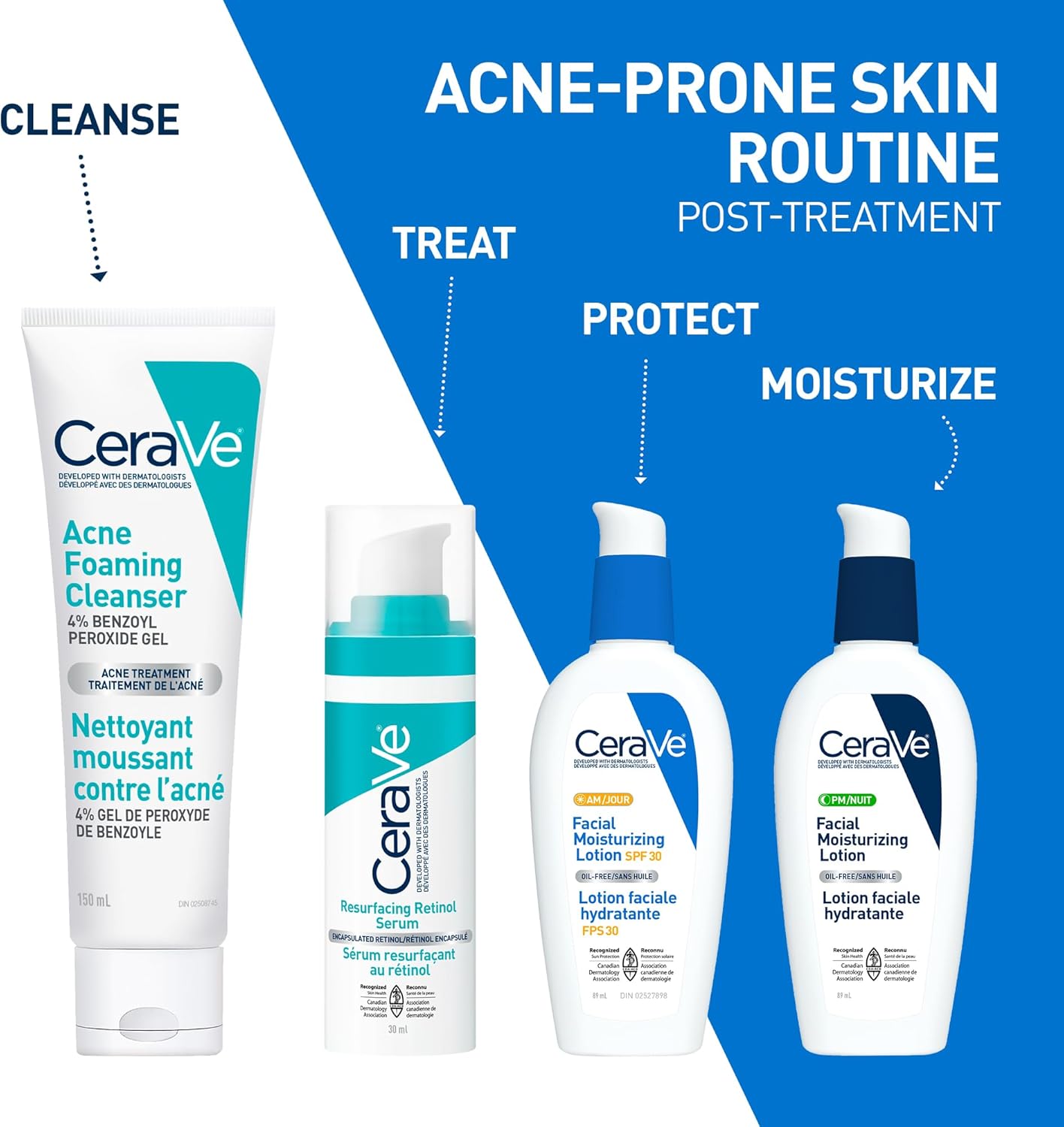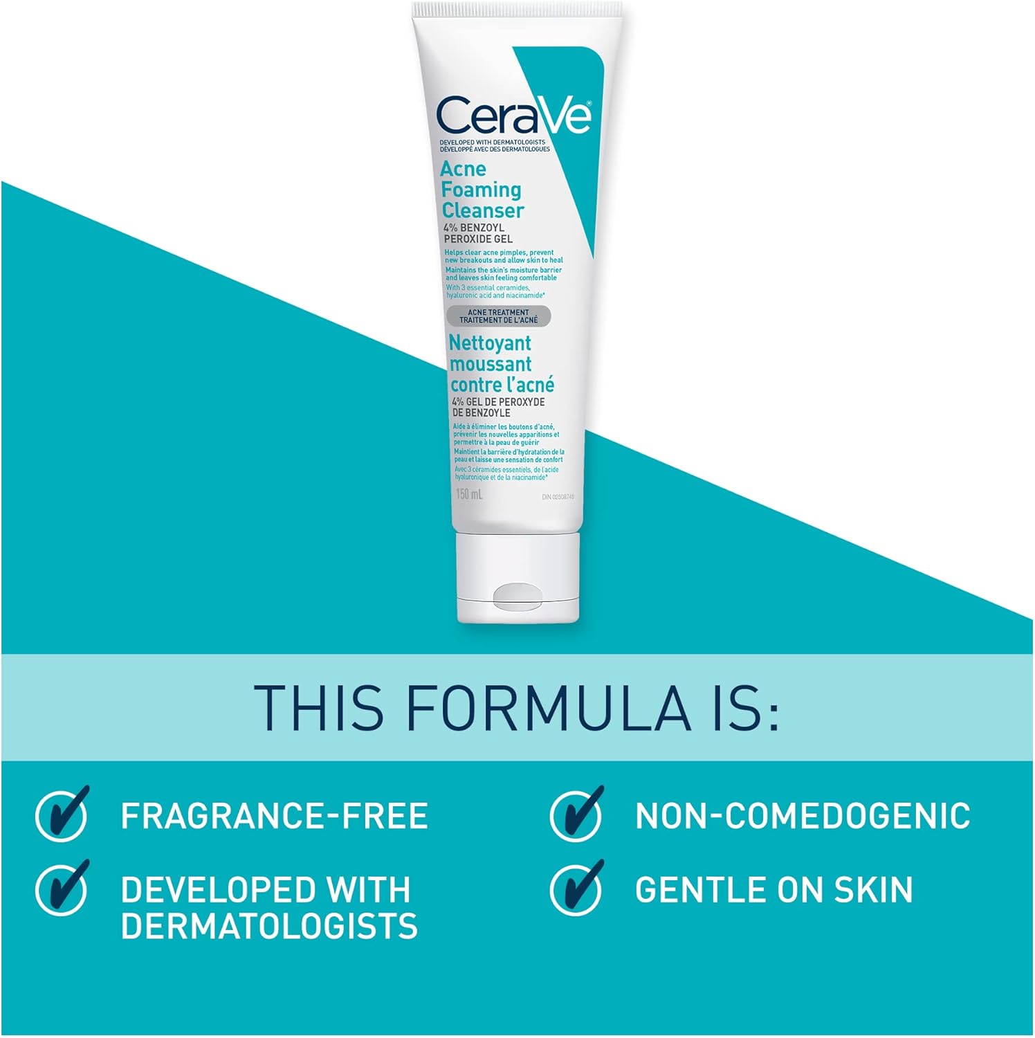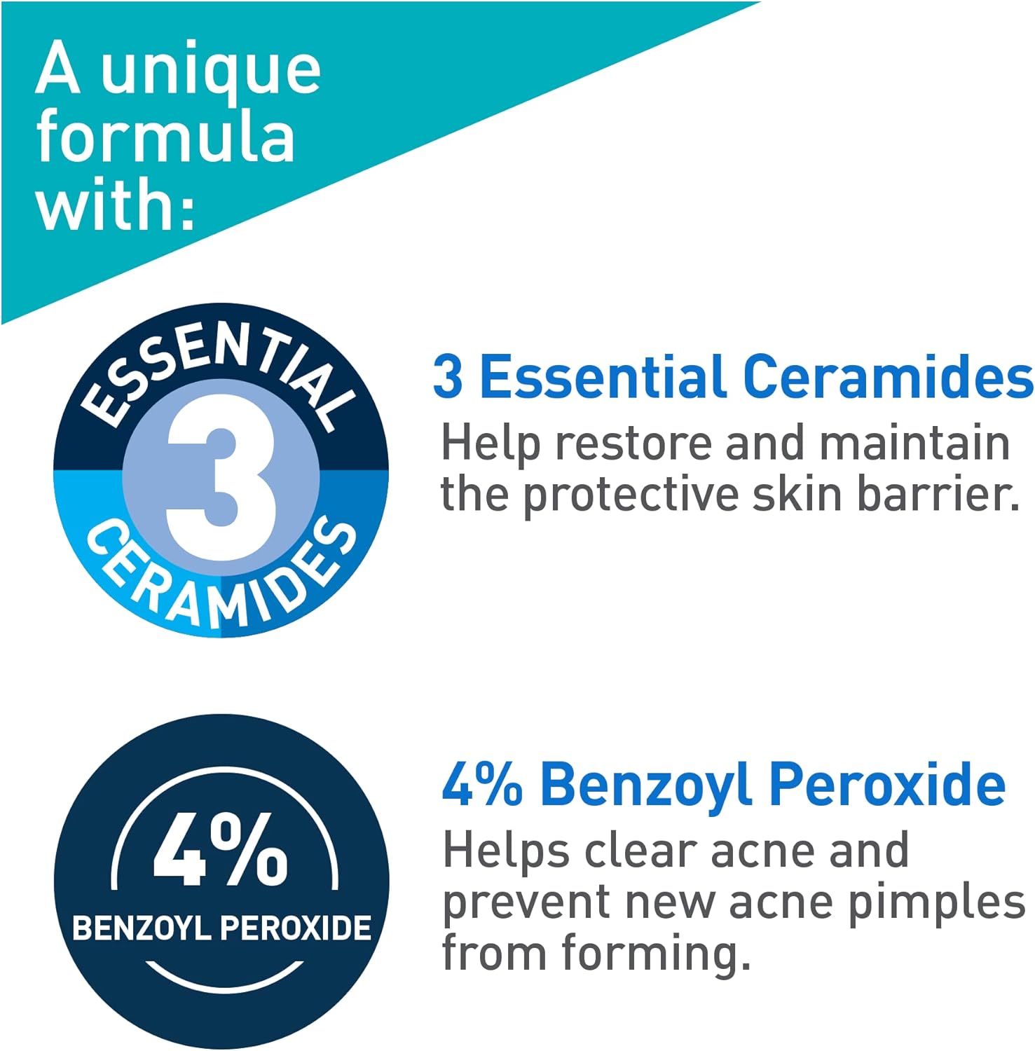 Developed with dermatologists, CeraVe Acne Foaming Cleanser with 4% benzoyl peroxide, helps clear acne pimples, prevent new breakouts, and allow skin to heal. This gentle yet effective acne cleanser, formulated with 3 essential ceramides, hyaluronic acid and niacinamide, helps maintain the skin’s moisture barrier and retain skin’s natural moisture. This non-comedogenic, fragrance-free face wash instantly dissolves dirt and excess oil to cleanse face, without stripping the skin of its natural moisture. Skin will feel softer, smoother, more clarified and comfortable while reducing acne, without dryness or flaking. How to use: For New Users: Apply product to a small area once a day for three day to test if you are sensitive to this product. If no discomfort occurs, cover the entire affected area with a thin layer. Start with one application daily, then gradually increase to two or three times daily, if needed. If dryness or peeling occurs, reduce application to once a day or every other day. Rinse off. For external use only. Allergy alert- get medical help right away if you develop hives, swelling of the eyes and mouth, blistering, or difficulty breathing. Do not use on sensitive skin if you are allergic to benzoyl peroxide. Ask a doctor or a pharmacist before use if you have severe acne. When using this product skin irritation and dryness are more likely to occur when using another topical acne product at the same time. If irritation occurs, use only one product at a time. Avoid contact with eyes, lips, mouth & nostrils. If contact occurs, rinse thoroughly with water. Avoid contact with hair and dyed fabrics, which may be bleached by this product. Avoid unnecessary sun exposure & use sunscreen. weeks. Keep out of reach of children. If swallowed, call a poison control centre or get medical help right away.