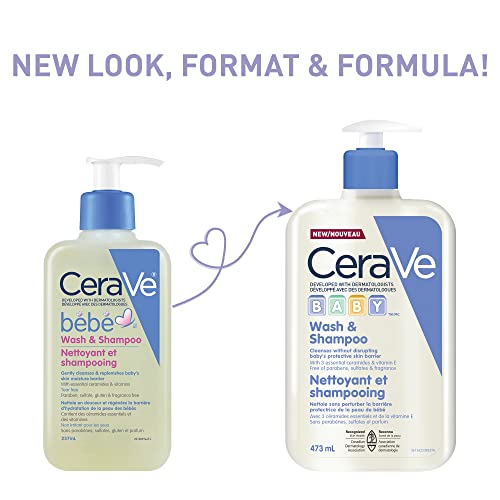 CeraVe Baby Wash & Shampoo Gentle Tear-Free Formula Hypoallergenic, Fragrance Free, Paraben Free & Sulfate Free,473 ml, White