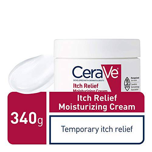 CeraVe Itchy Skin Relief Unisex Moisturizing Cream. For Dry & Eczema-prone skin. Anti-itch cream for minor irritations, insect bug bites, sunburn relief & scrapes. With Pramoxine, Fragrance Free, 340g