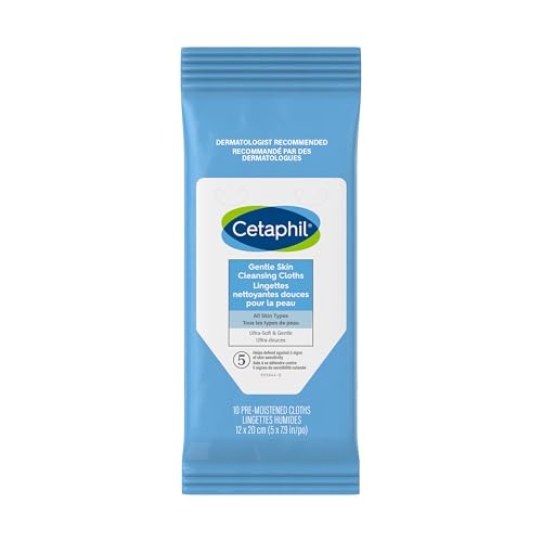 Cetaphil Gentle Skin Cleansing Cloths - Face and Body Wipes - Removes Dirt, Oil and Makeup - Non Irritating - For Sensitive Skin - Dermatologist Recommended, 10-Count