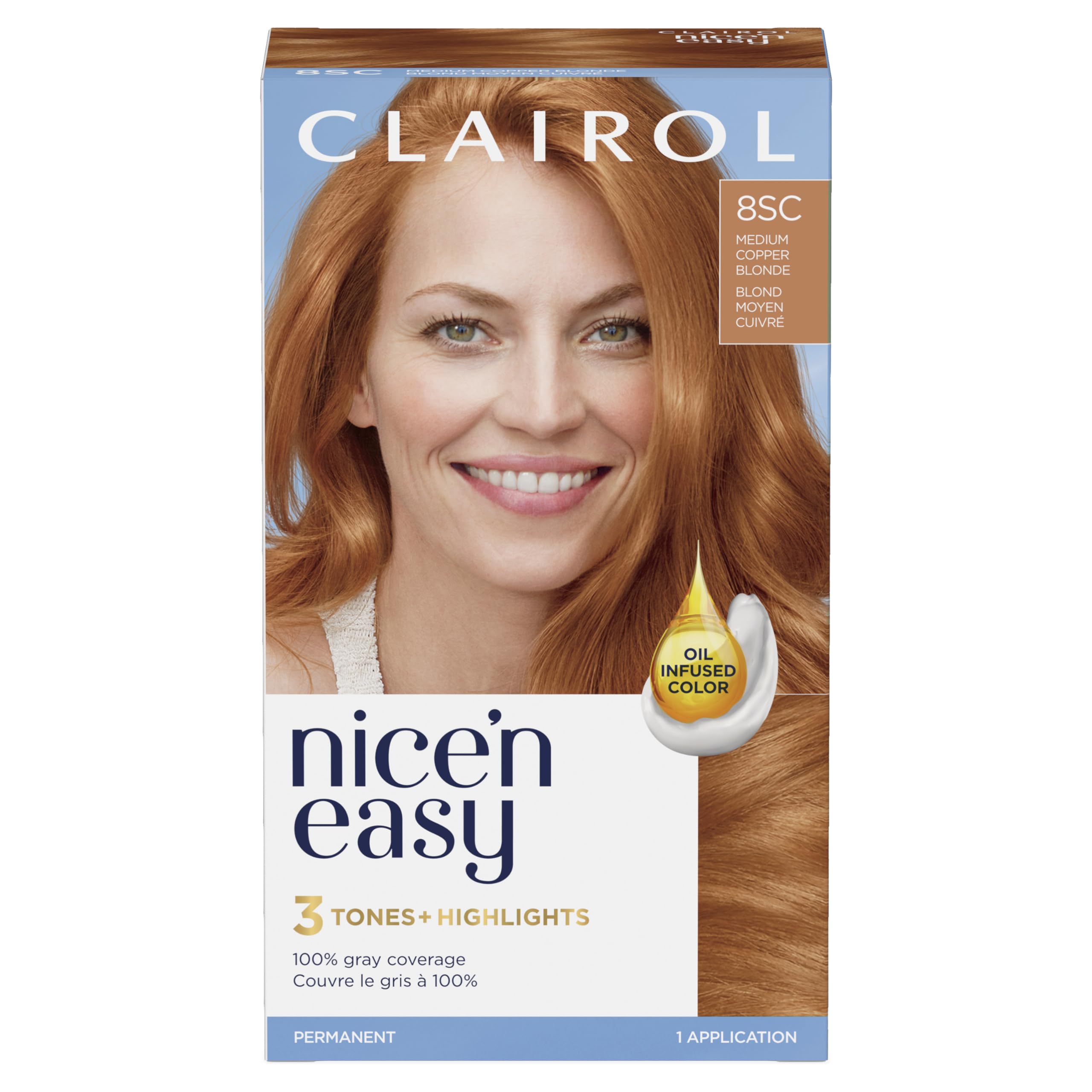 Clairol Nice'n Easy Permanent Hair Dye, 8SC Medium Copper Blonde Hair Color, Pack of 1