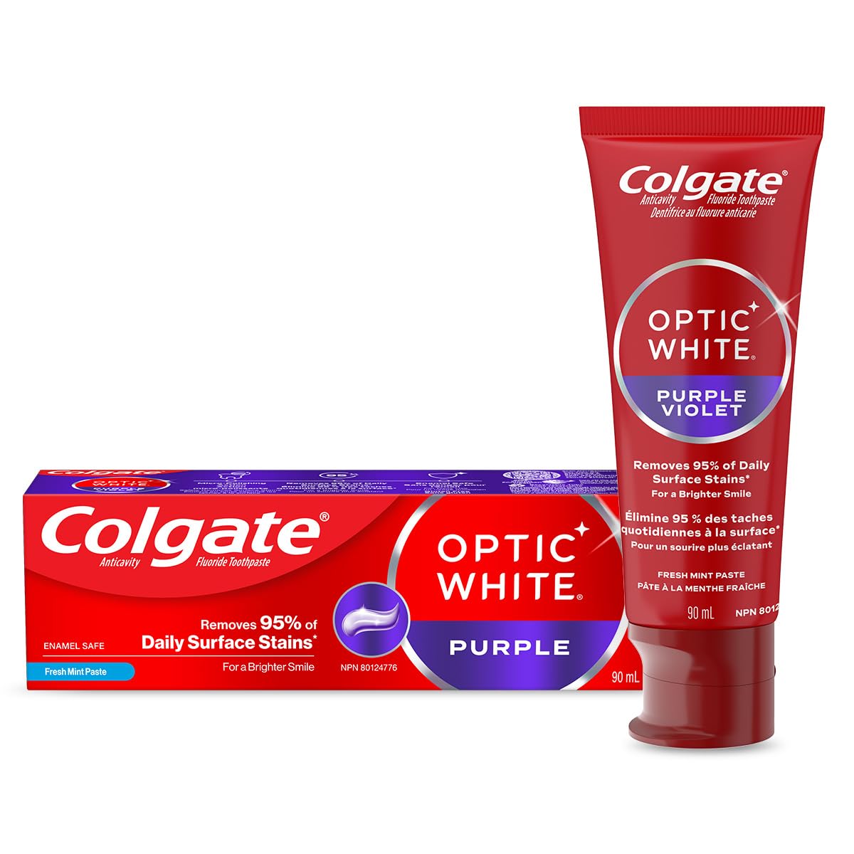 Colgate Optic White Purple Toothpaste for Teeth Whitening, Mint Paste, 90 mL - Whitening Toothpaste - Sensitivity and Gum Whitening Toothpaste