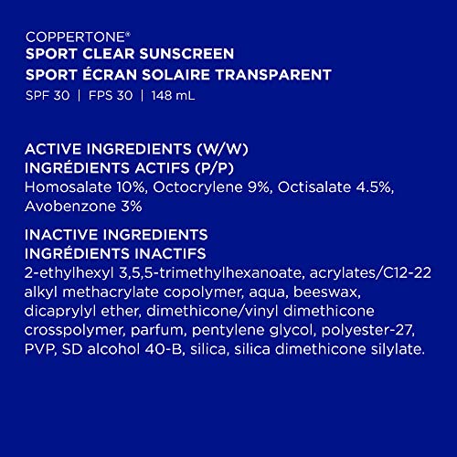 Coppertone Sport Clear Sunscreen SPF 30, Water-Resistant Sport Sunscreen Gel, Rubs In Clear and Stays On Strong When You Sweat