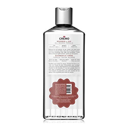 Cremo All Season Body Wash, Bourbon & Oak, 16 fl oz - Masculine Scent with a Tantalizing Essence of Lively Distiller's Spices, Smoked Bourbon and Oak