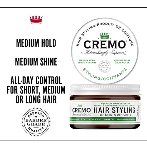 Cremo Premium Barber Grade Hair Styling Cream, Medium Hold,