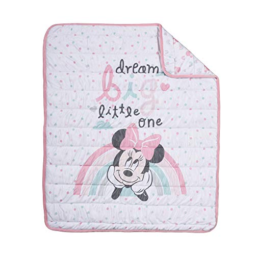 Disney Minnie Mouse Reversible Quilted Blanket for Baby, Infant, Newborn, Soft and Warm Toddler Throw for Crib, Nursery, Playroom, Going Dotty Collection