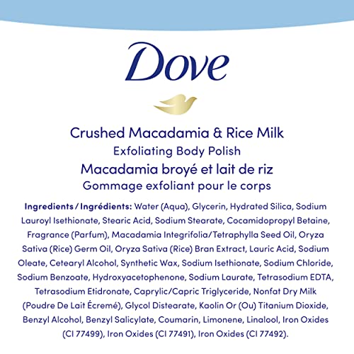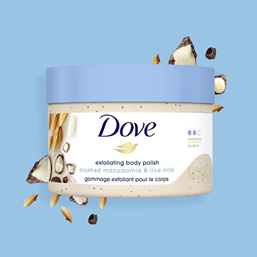 Dove Exfoliating Body Polish moderate exfoliant Macadamia & Rice Milk gentle to skin microbiome 298 g