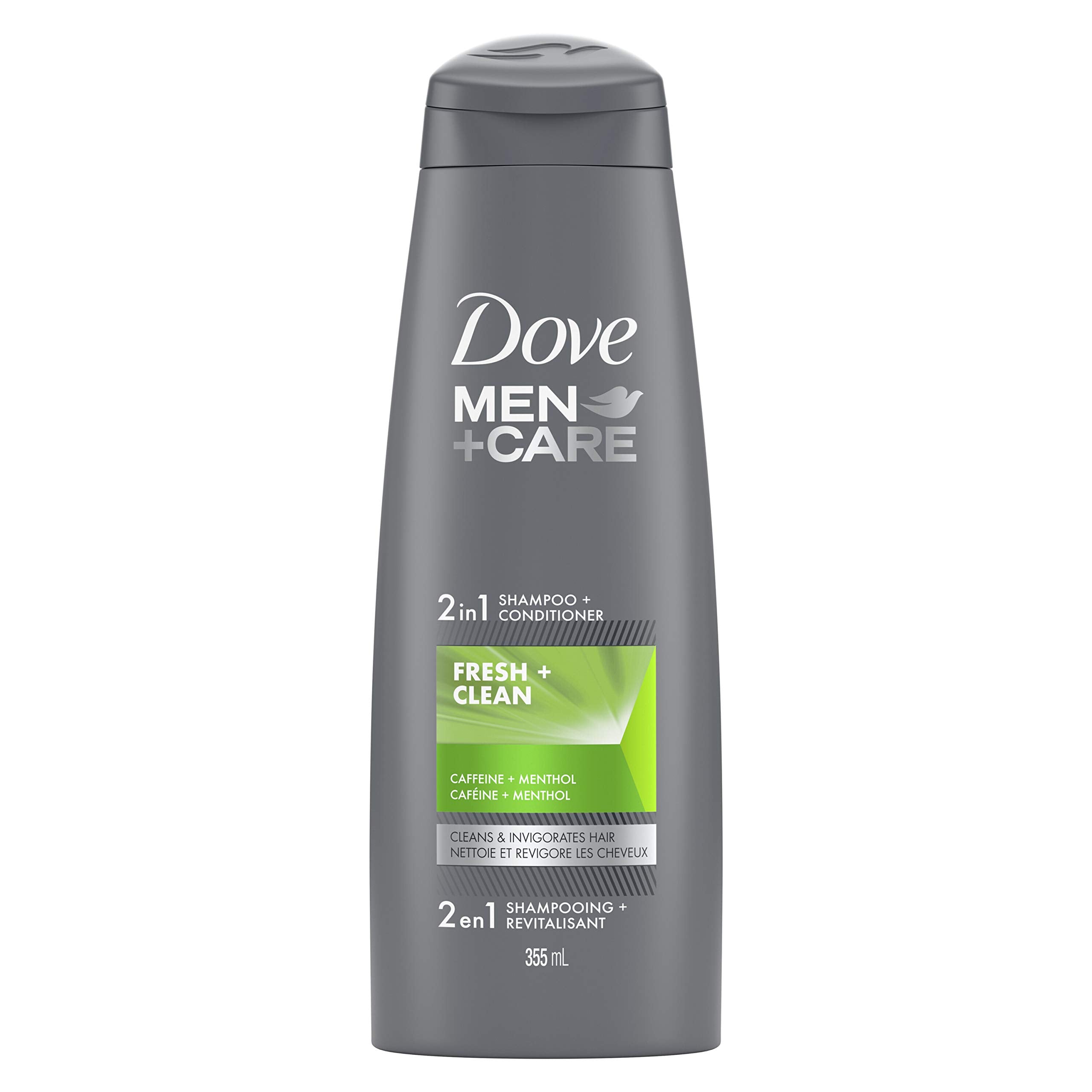 Dove Men + Care 2 in 1 Shampoo & Conditioner deep cleans hair for an invigorating effect Fresh Clean with caffeine and menthol 355 ml