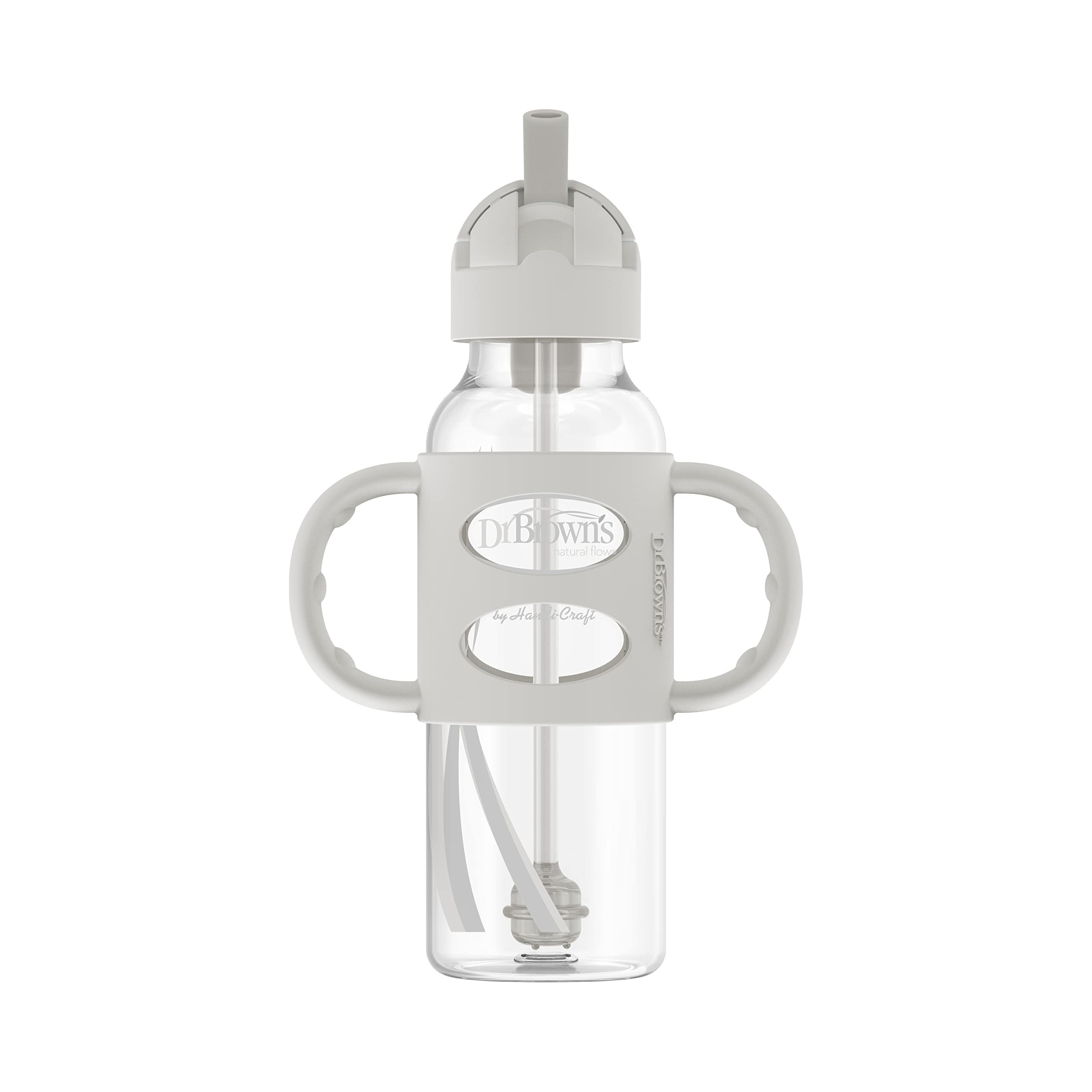 Dr. Brown's Milestones Sippy Straw Bottle with Silicone Handles, Gray, 8 oz