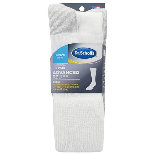 Dr. Scholl's Men's Advanced Relief Blisterguard Socks - 2 & 3 Pair Packs - Non-Binding Cushioned Moisture Management, White, 13-15