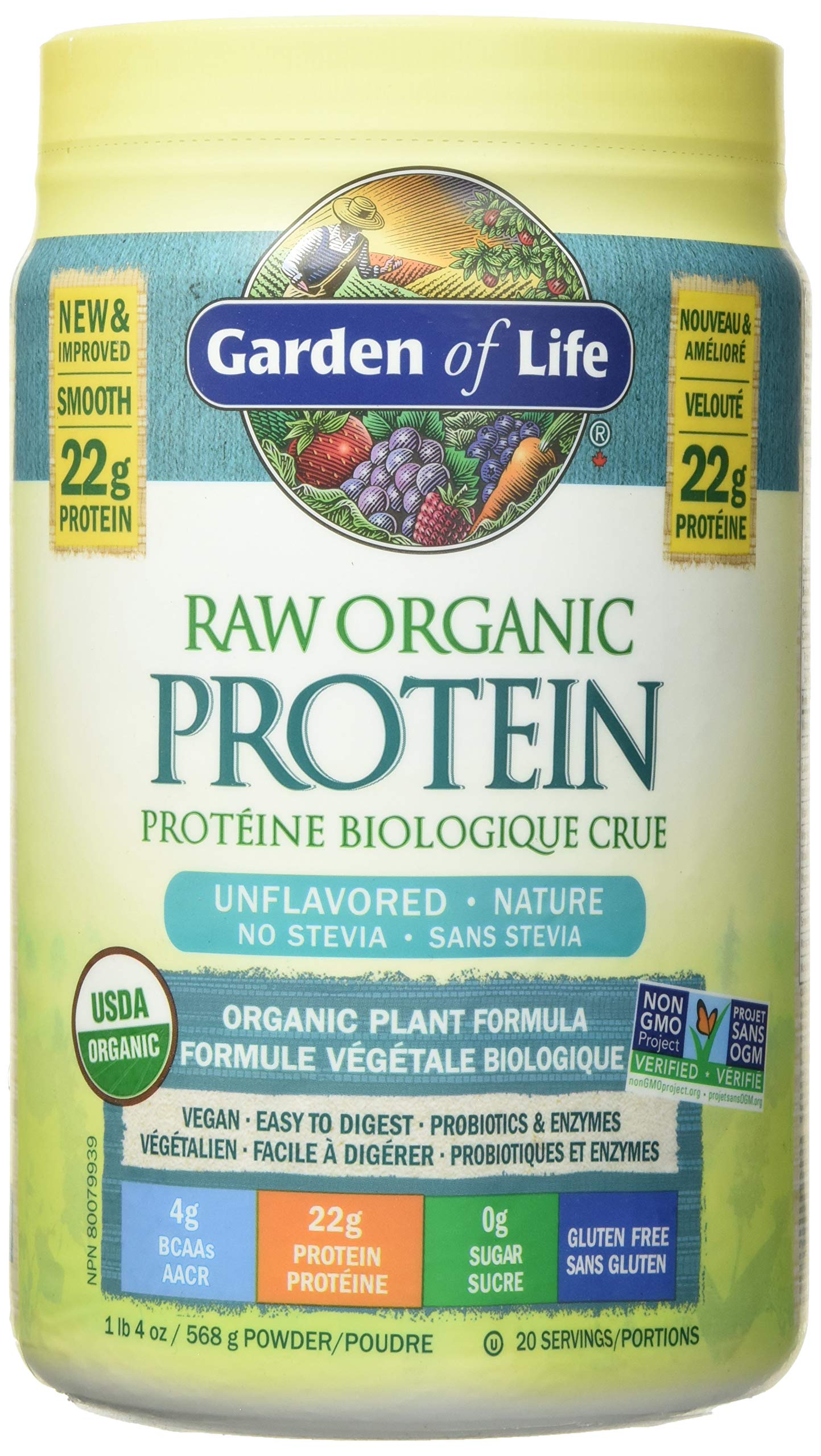 Garden Of Life Raw Organic Protein, Unflavored, 568g. Packed with 22 Grams of Certified Organic Plant Protein, including organic peas grown and processed in Canada. Assists in building and repairs muscles. 4g of BCAAs