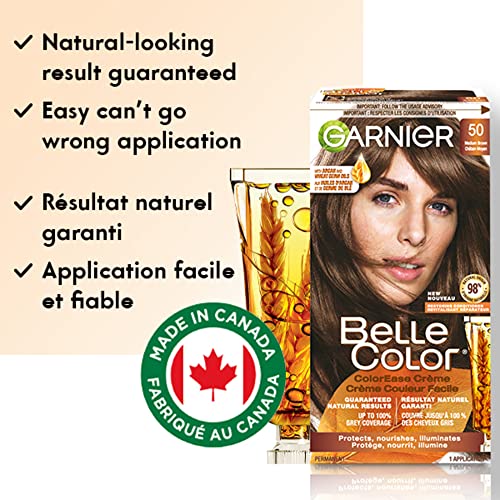 Garnier Belle Color Permanent Hair Dye, 48 Mocha Brown, 100% Grey Coverage, Enriched with Argan Oil and Wheat Germ Oils - 1 Application, Packaging may vary