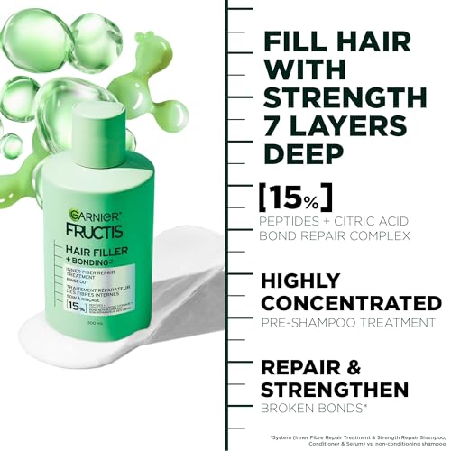 Garnier Fructis Hair Filler + Bonding Fiber Repair Pre-Shampoo Treatment, For Damaged Hair, Repairs & Strengthens Broken Bonds, Fills Hair with Strength 7 Layers Deep,300ml