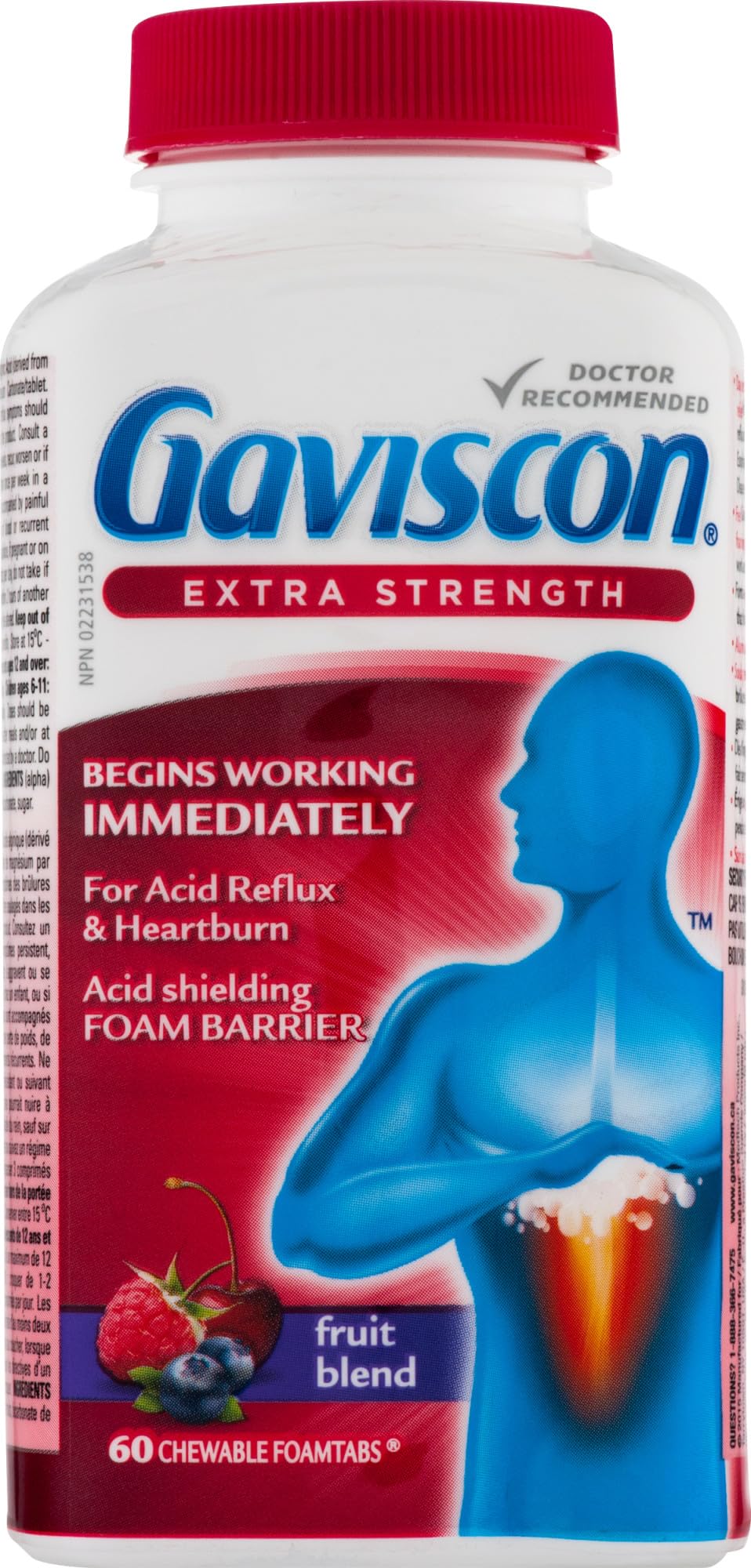 Gaviscon Extra Strength Tablets - 60 Count - Chewable Foaming Antacid Tablets for Day and Night Heartburn Relief, Acid Reflux and GERD Relief, Fruit Blend - Free of Aluminum, Lactose and Gluten