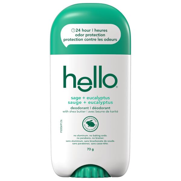 Hello Sage + Eucalyptus Natural Deodorant with Shea Butter, Aluminum Free, Parabens Free, 73g