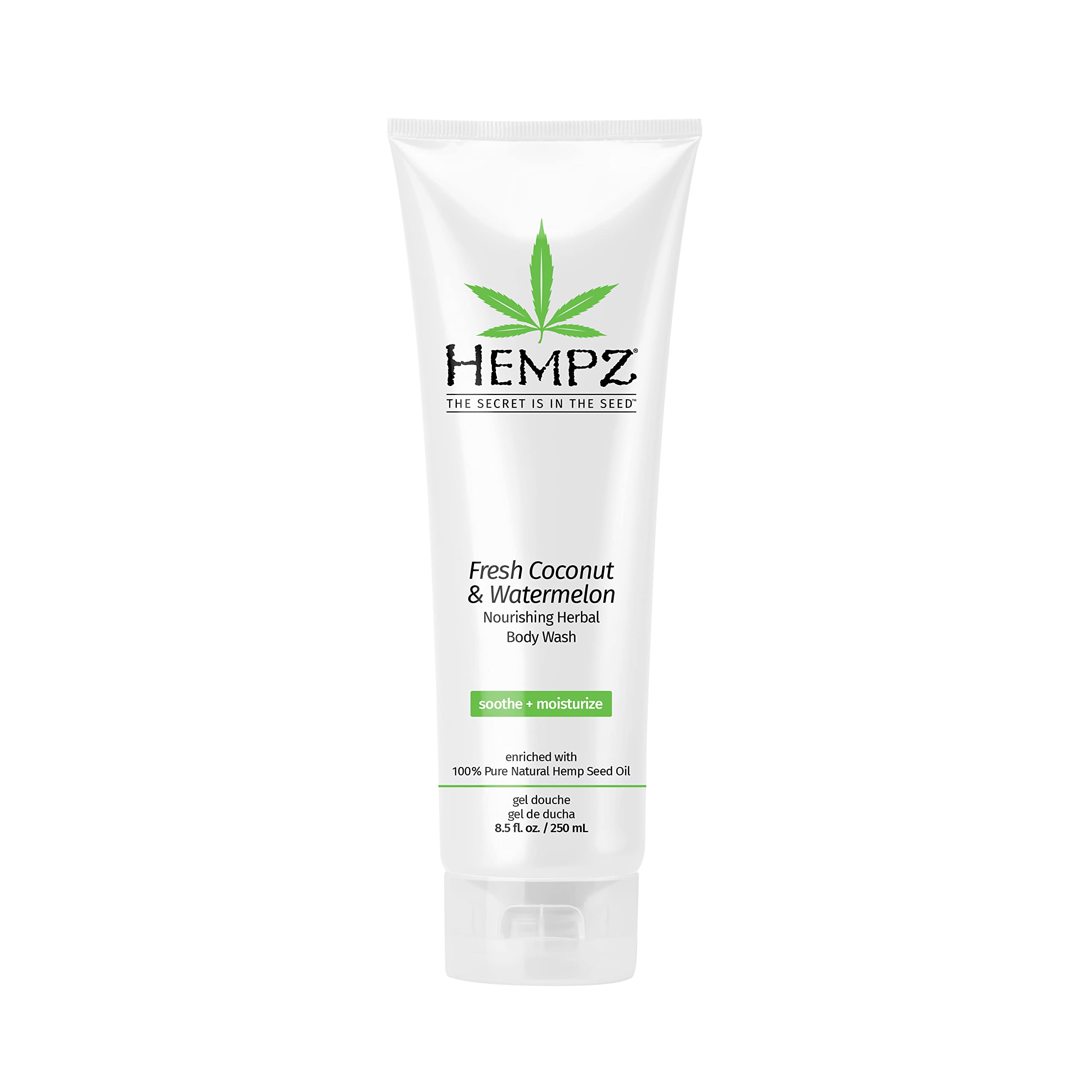 Hempz Fresh Coconut and Watermelon Nourishing Herbal Body Wash, 8.5 oz. - Scented Shower Gel, Bath Soap with Anti-Aging Serum for Youthful Skin - Fragranced Shower Cream with Chamomile - Vegan