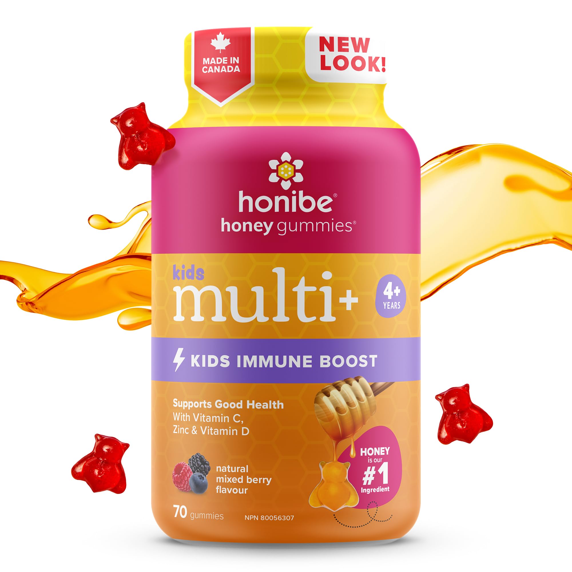 Honibe Kids Multivitamin Gummies Plus Immune Boost | Honey-Based Vitamins Made in Canada | Children's Chewable Gummy Vitamins | Vegetarian Kids Vitamin Gummies | Kids Zinc Vitamin Gummy Bees | 70 gummies