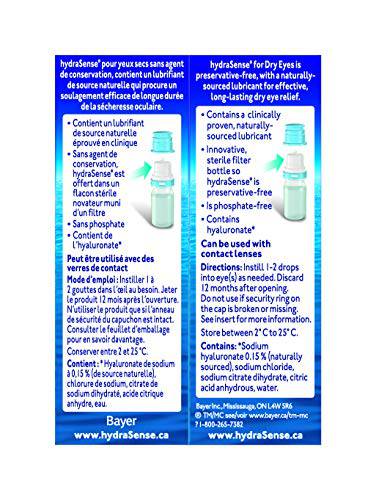 hydraSense Eye Drops, For Dry Eyes, Fast and Long-Lasting Relief, Preservative Free, Naturally Sourced Lubricant, 10 mL