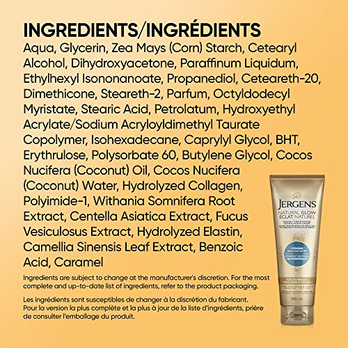 Jergens Natural Glow +Firming Daily Moisturizer & Gradual Sunless Self Tanning Body Lotion for Dry Skin, Fair to Medium Shade (200 mL)