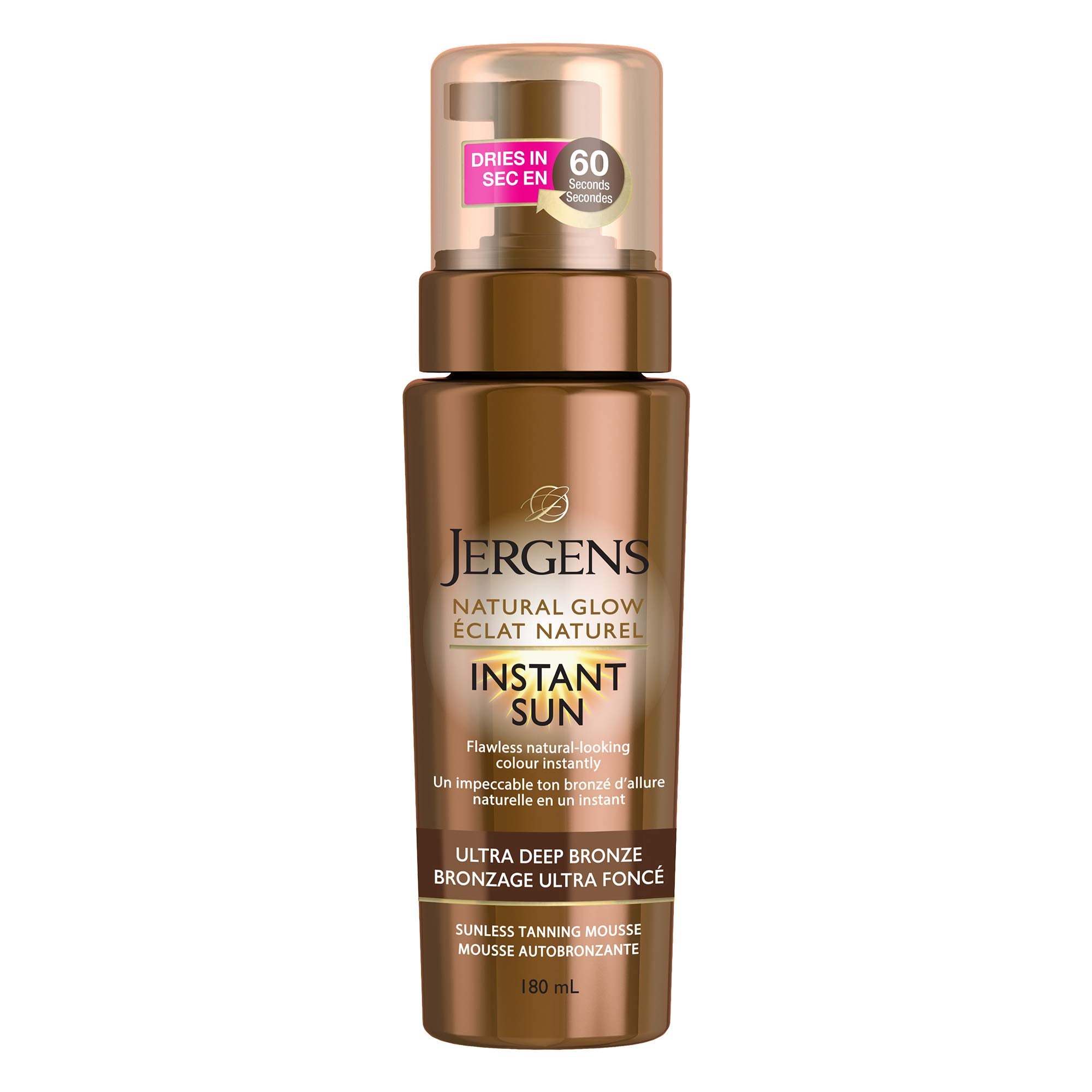 Jergens Natural Glow Instant Sun Sunless Self Tanning Mousse for Dry Skin, Ultra Deep Bronze Shade (180 mL)