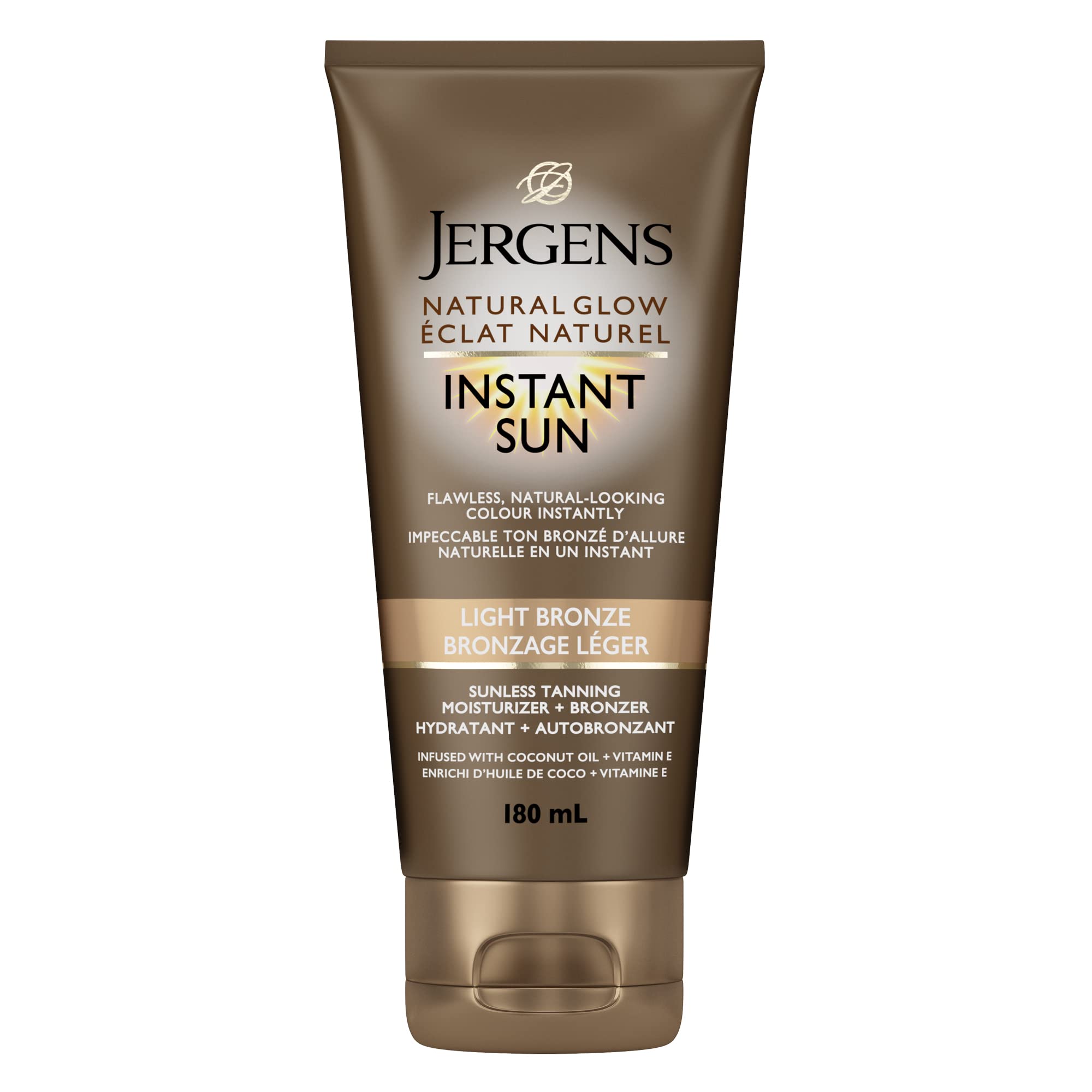 Jergens Natural Glow Instant Sun Sunless Tanning Moisturizer + Bronzer, Light Bronze (180 mL)