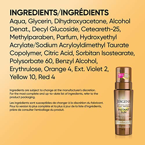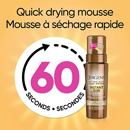 Jergens Natural Glow, Instant Sun, Sunless Tanning Mousse, Light Bronze, Self Tanner for Flawless, Natural Looking Colour (2 Pack)