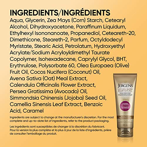 Jergens Natural Glow +Nourish Daily Moisturizer & Gradual Sunless Self Tanning Body Lotion for Dry Skin, Medium to Deep Shade (220 mL)