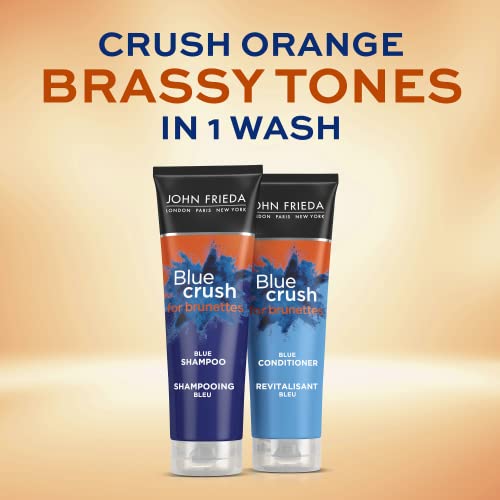 John Frieda Blue Crush for brunettes, Blue Shampoo & Conditioner Set, for Brassy Hair |Phthalate Free, Ammonia Free (Pack of 2)