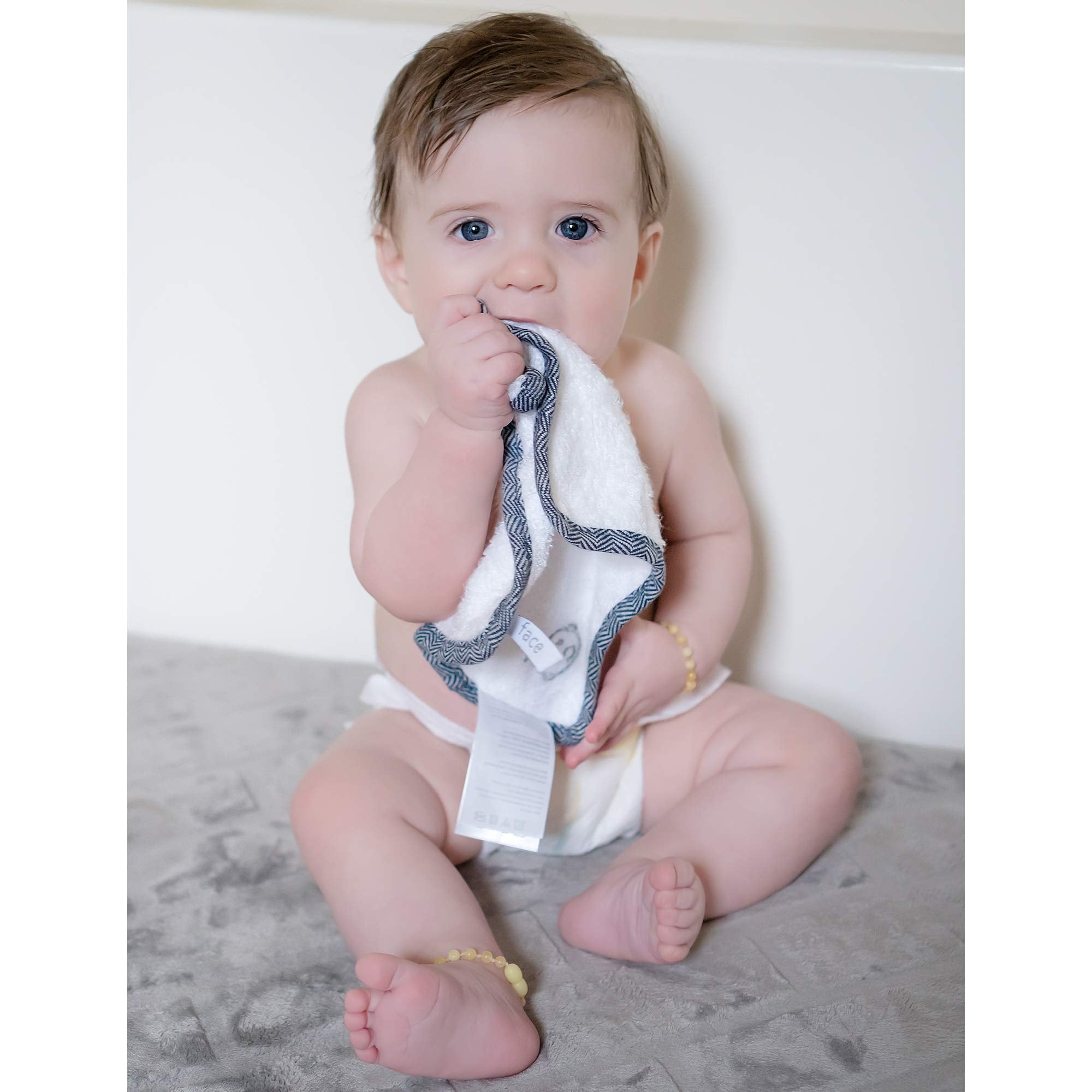 Juddlies - Bamboo 3 Pack Washcloths - White & Driftwood Grey - Newborn Baby Infant Toddler Unisex
