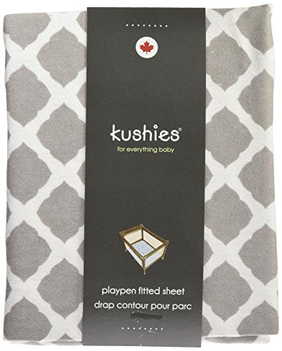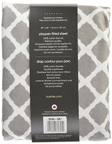 Kushies Pack N Play Playard Sheet, Soft 100% breathable cotton flannel, Made in Canada, Grey Lattice