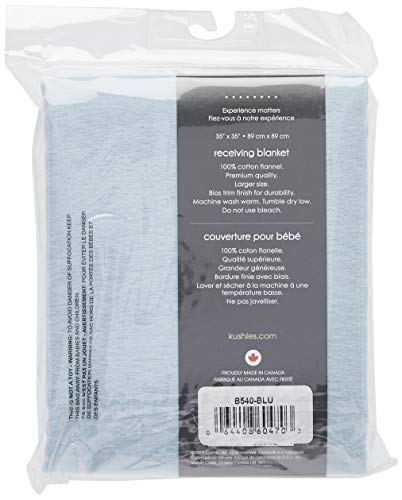 Kushies Premium Soft Newborn Flannel Receiving Blanket, 30" x 30" square for swaddling, Solid Blue
