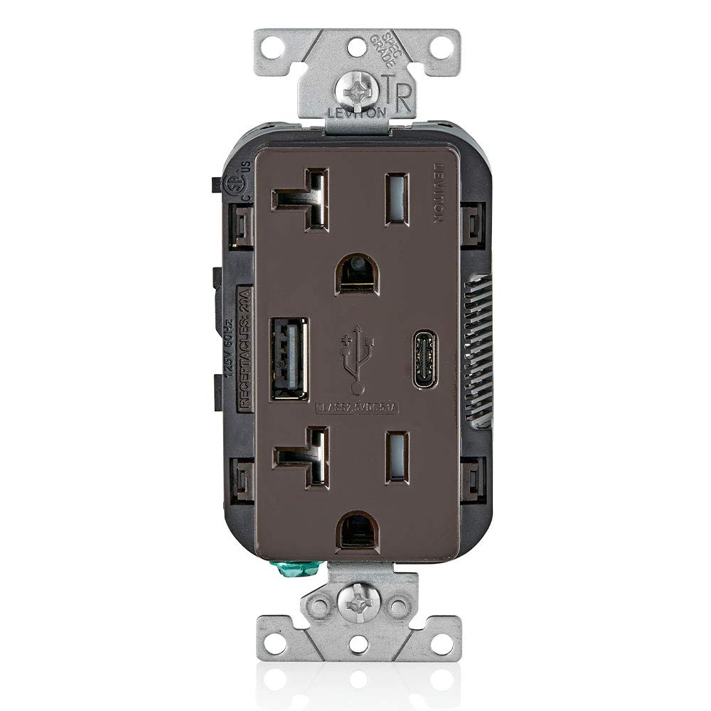 Leviton USB Type A-C Receptacle, 20 Amp, Tamper-Resistant, T5833-00B, Brown