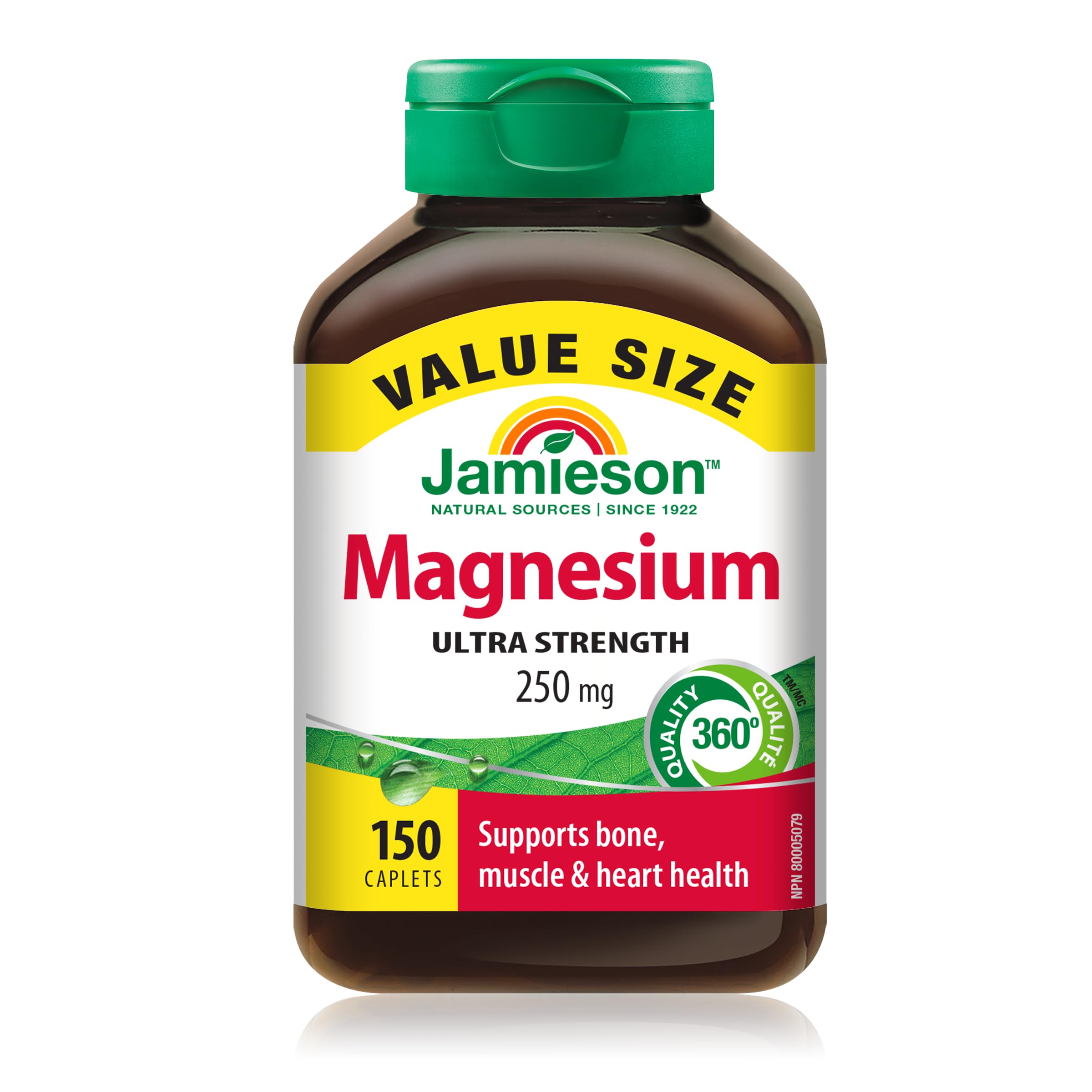 Jamieson Ultra Strength Magnesium 250 mg, Electrolytes, Supports Overall Health, Bone Health, and Muscle Function. Non-GMO, Gluten-Free, 150 Caplets, Proudly Canadian