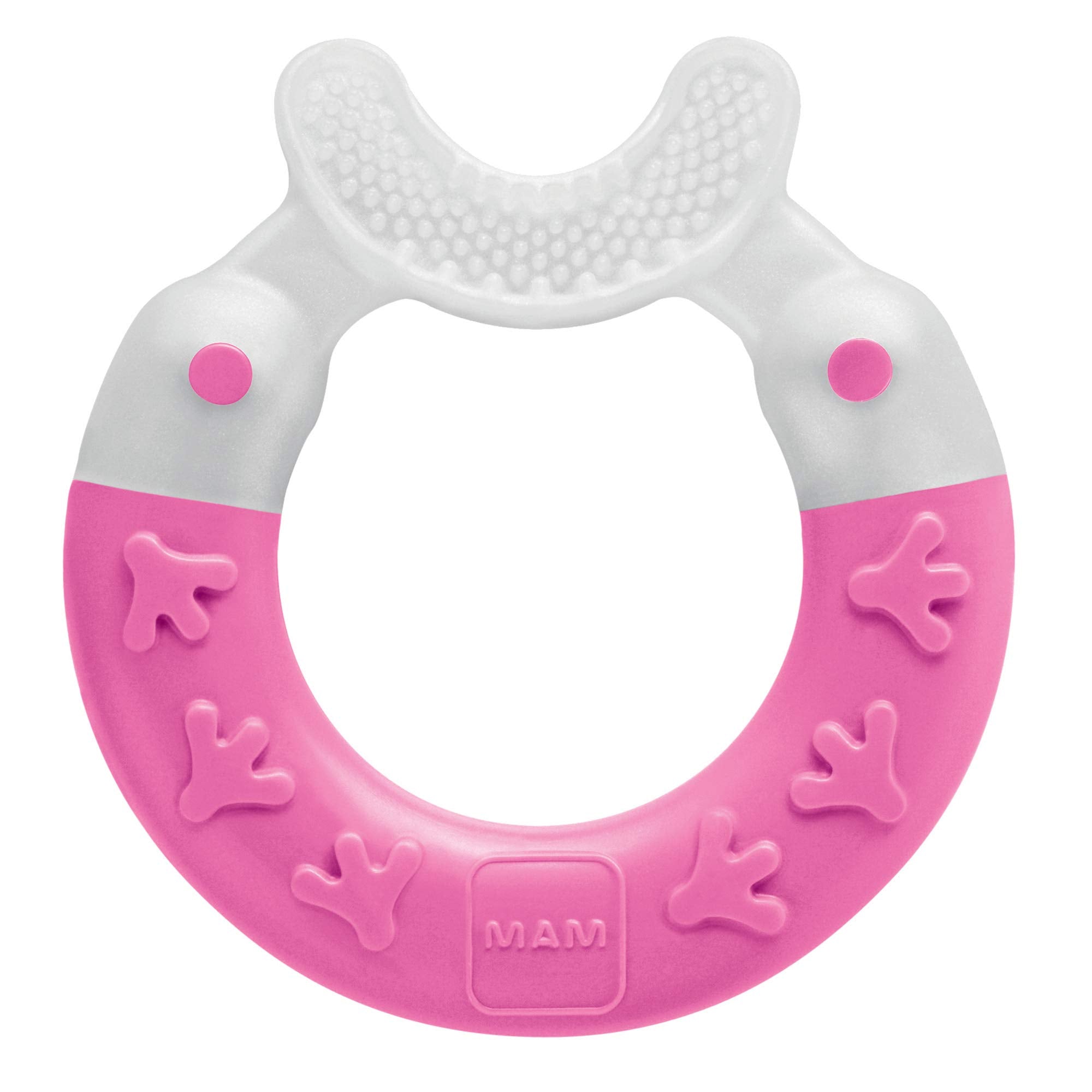 MAM Baby Toys, Teething Toys, Bite and Brush Teether, Girl 3+ Months (1 Count), MAM Baby Toothbrush Teether for Baby Girl Teething Pain, Baby Essentials