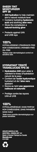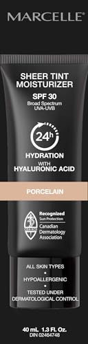 Marcelle Sheer Tint Moisturizer SPF 30, Porcelain, with Hyaluronic Acid and Aloe, Hypoallergenic, Non-Comedogenic, Fragrance-Free, Paraben-Free, Oil-Free, 40 mL